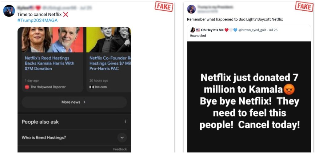 Fake profiles used the backlash against Netflix to amplify anti-Harris, pro-Trump narratives.