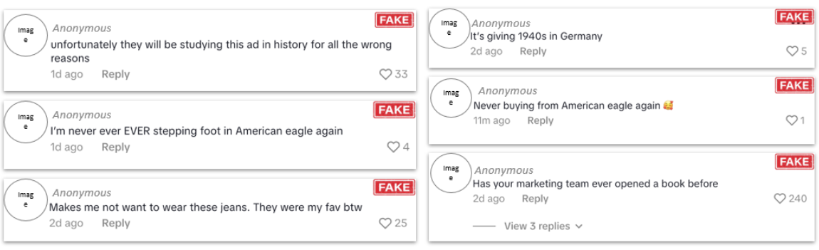 In the picture: fake profiles attacking American Eagle