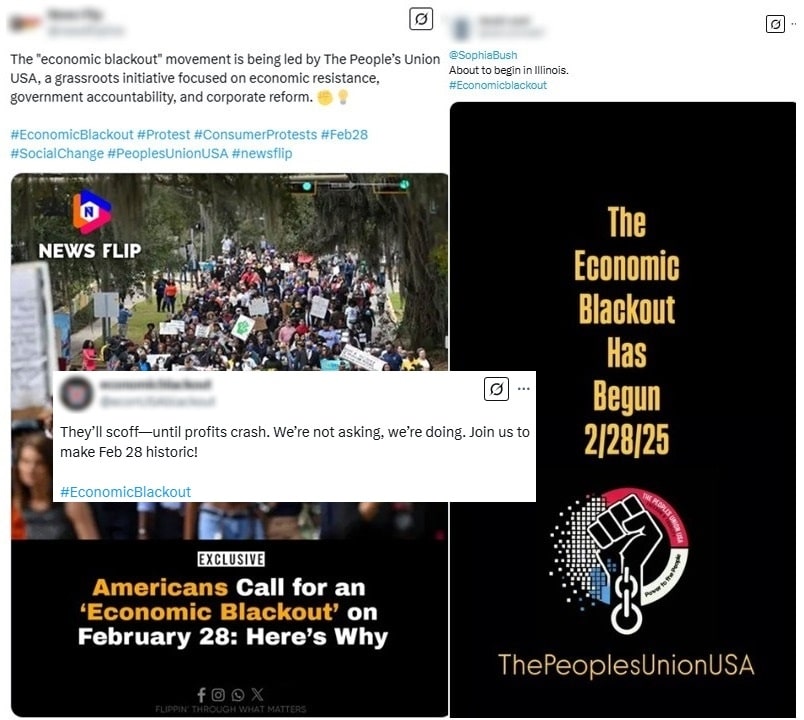 - Hundreds of profiles on X promoted the Blackout using the hashtags #EconomicBlackout and #EconomicBoycott