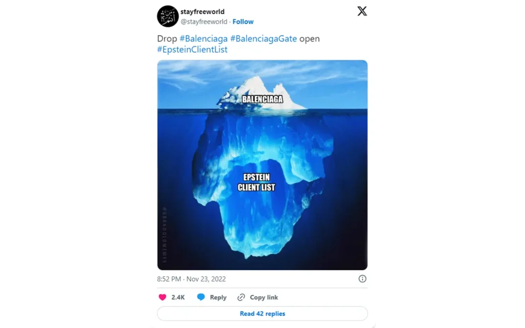What began as genuine consumer outrage quickly escalated into wild accusations, including claims that Balenciaga was involved in child trafficking and satanic worship, which fueled an entirely new wave of disinformation – the scope of which was massive.