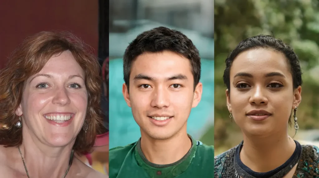 Pictured above: Three images created using the website thispersondoesnotexist.com – none of the people in these photos are real, but entirely AI-generated.