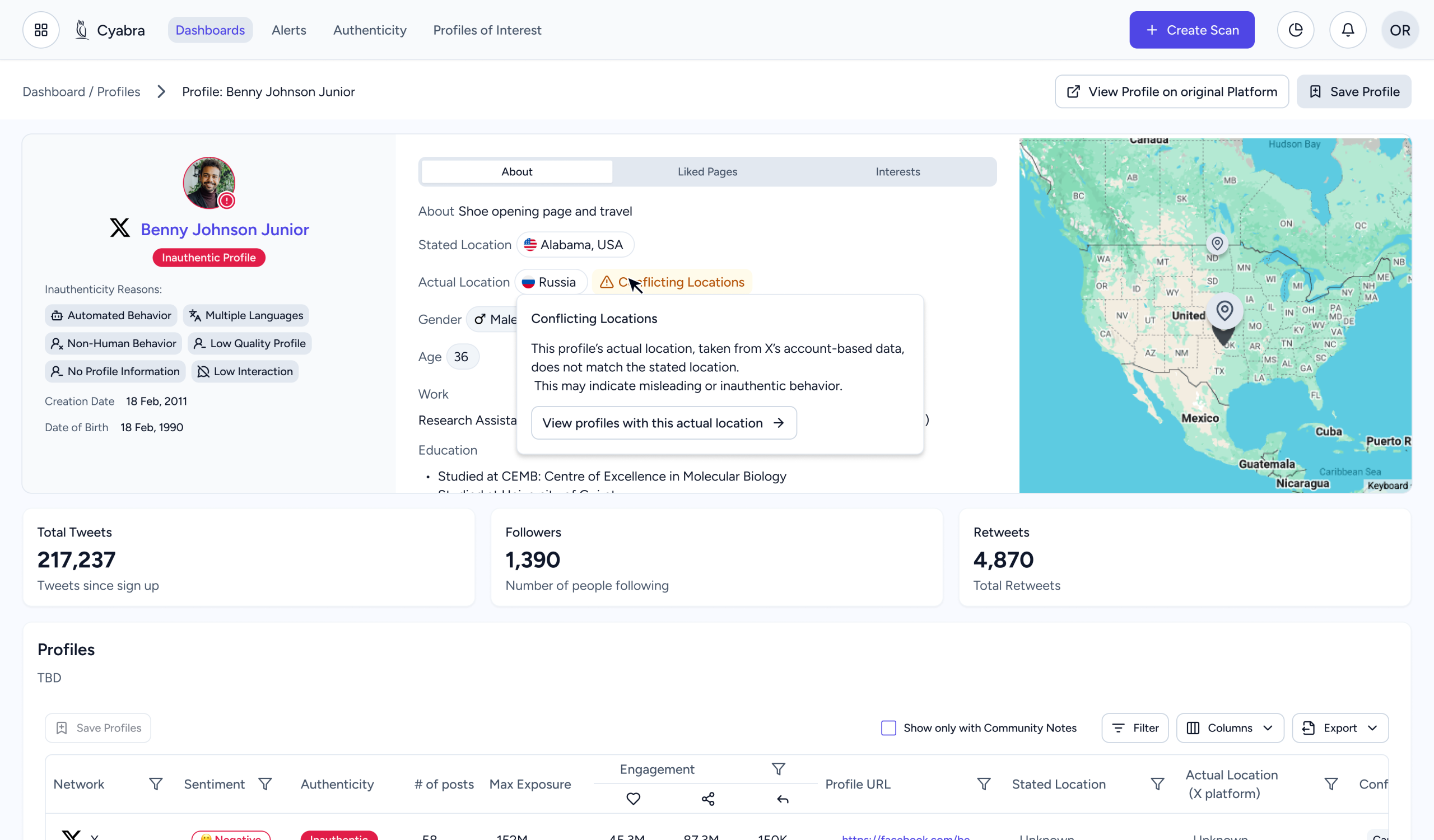 Contact Cyabra to see our Conflicting Locations feature in action.