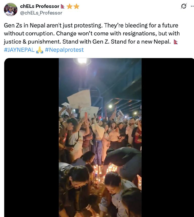 For those following Nepali discourse in recent years, the movement was not unexpected; it reflected long-standing frustrations, with accusations of corruption, nepotism, and political favoritism fueling discontent. These grievances resonated strongly with Gen Z, who were at the forefront of the demonstrations and organized much of the movement online.