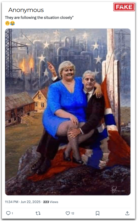 Fake accounts deployed character defamation, often referring to Støre as a “clown,” “traitor,” or “weak leader” and using harsh language. Some replies included AI-generated offensive images and deepfakes showing Støre in humiliating contexts, designed to provoke ridicule and disgust.